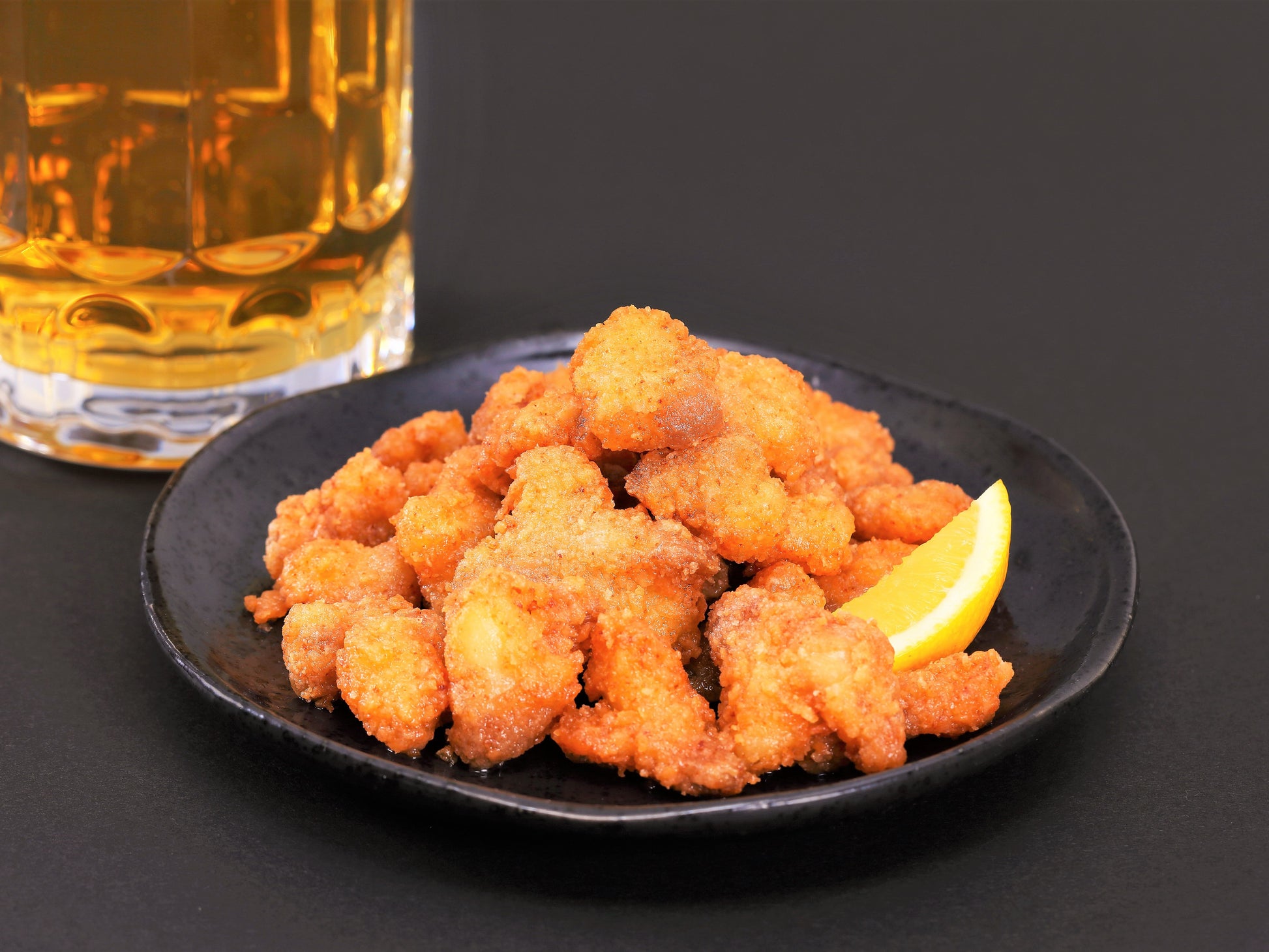 鶏ひざ軟骨の唐揚げ。袋ごとレンジができて食べたいときに簡単調理で食べられます。90gの少量パックでおつまみにピッタリ。国内製造品。